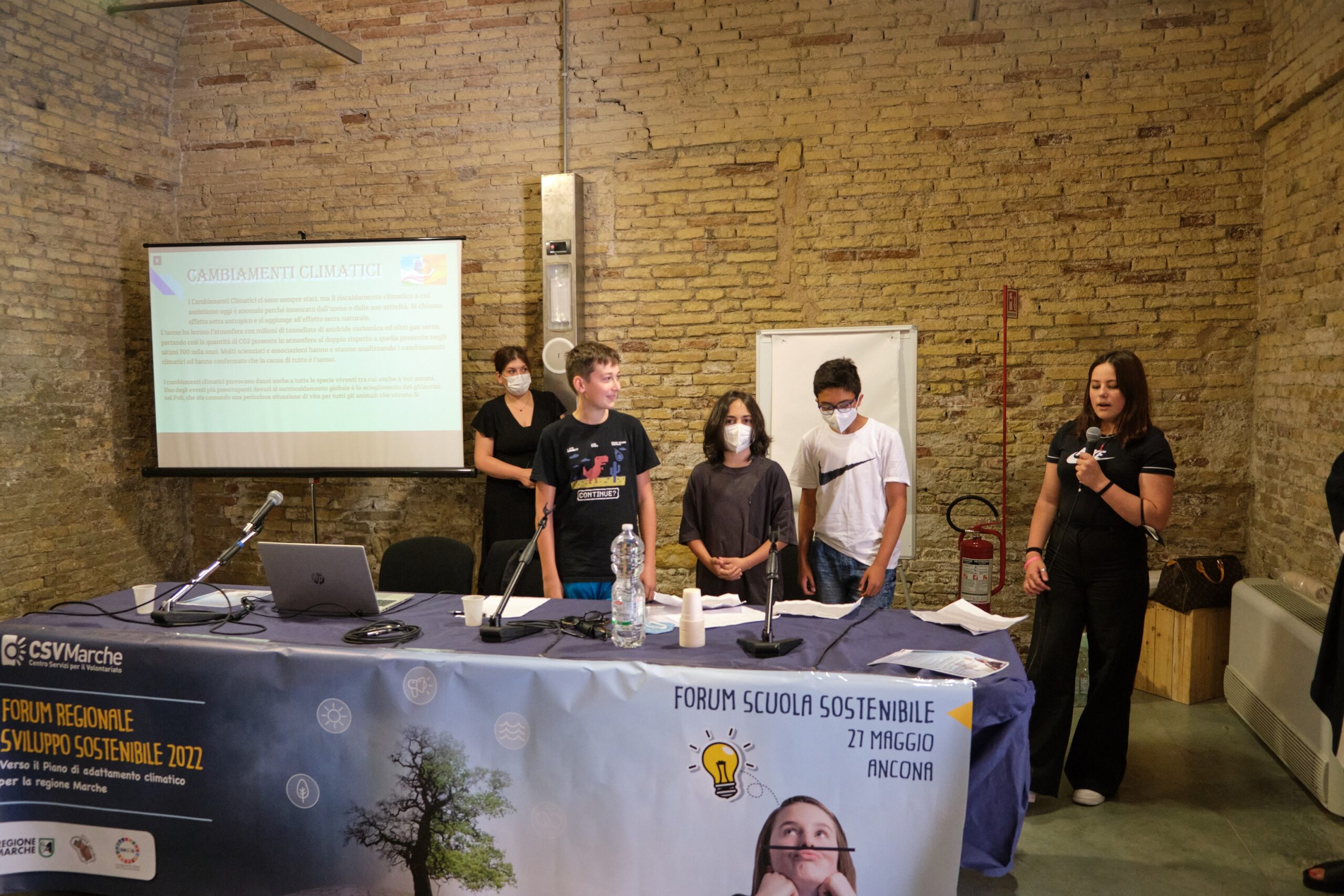 Inserite all’interno del Forum regionale sviluppo sostenibile ed. 2022, promosso dal CSV in collaborazione con la Regione Marche per il coinvolgimento e l’ascolto della società civile nel percorso di definizione del Piano regionale di adattamento climatico, le attività del “Forum scuola sostenibile” sono partite a marzo attraverso una serie di incontri con operatori del Csv e con rappresentanti di associazioni del territorio. Si sono approfonditi i temi dell’Agenda Onu 2030, nei quali gli aspetti ambientali, economici e sociali si integrano tra loro allo scopo di costruire una società più equa, sana e armoniosa per tutti. Particolare attenzione è stata posta al Goal 13 dell’Agenda 2030: “lotta contro i cambiamenti climatici”, con specifici riferimenti alla situazione del proprio territorio e della regione Marche in termini di azioni di adattamento ai cambiamenti climatici. In seguito, insieme ai docenti, gli alunni sono stati accompagnati ad esprimere ed elaborare le loro idee, proponendo progetti e azioni sulla sostenibilità della scuola, degli spazi messi a disposizione e del territorio in cui vivono. Gli elaborati sono infine stati presentati all’evento conclusivo, alla presenza dell’Assessore e dei competenti funzionari regionali, nell’ottica di stimolare e promuovere nei giovanissimi coinvolti un’esperienza di partecipazione pubblica a percorsi di programmazione di politiche locali, come quelli riferiti alla Strategia regionale di sviluppo sostenibile.