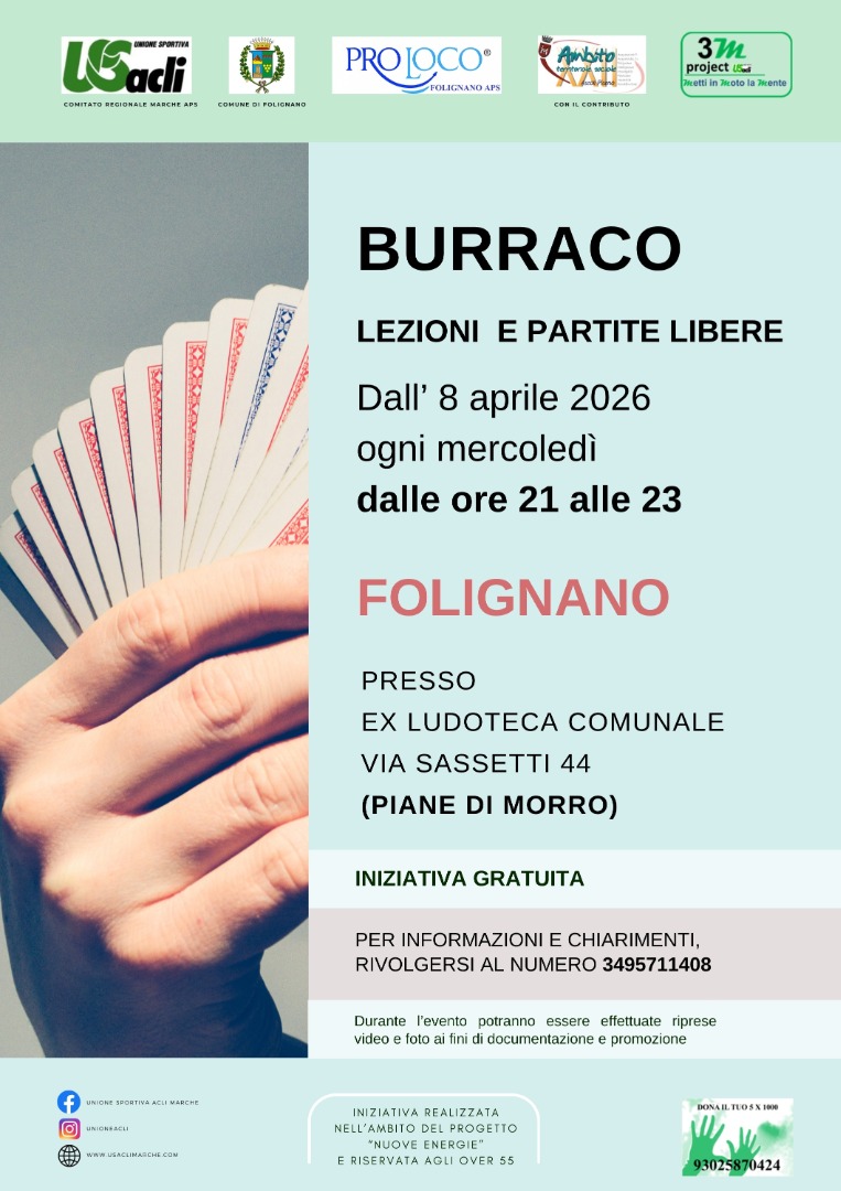 Proseguono le attività del progetto “Nuove energie”, coordinato da Unione Sportiva Acli Marche Aps e realizzato con la collaborazione della Pro Loco Folignano Aps, dell’Ambito sociale territoriale XXII e del Comune di Folignano.