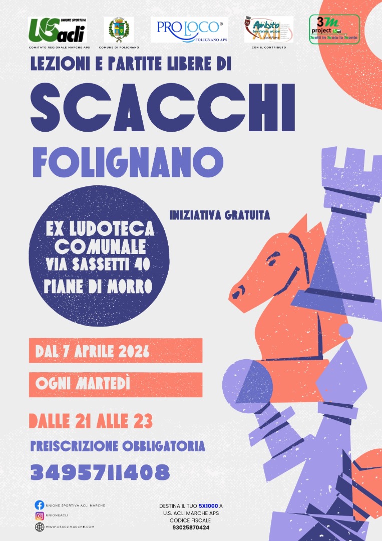 A Folignano arrivano gli appuntamenti gratuiti di “Nuove energie” tra scacchi e burraco