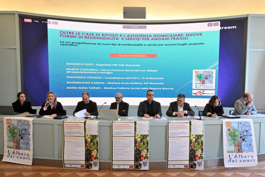 Mancano i posti letto nelle strutture, non si trovano le badanti e le famiglie si indebitano per l’assistenza agli anziani fragili. È l’allarme lanciato dall’associazione L’Albero dei Cuori–Anteas nella Sala Caselli dello Sferisterio di Macerata, in occasione del convegno che ha concluso un lungo percorso formativo dedicato proprio al welfare per la terza età dal titolo “Oltre le case di riposo e l’assistenza domiciliare: nuove forme di residenzialità e servizi per anziani fragili”, un corso iniziato a ottobre e organizzato da L’Albero dei Cuori Aps in collaborazione con Anteas Marche, CSV Marche, Anteas Macerata, ATS 15, ATS 16, Comune di Macerata, Anffas Sibillini e FNP CISL Marche.