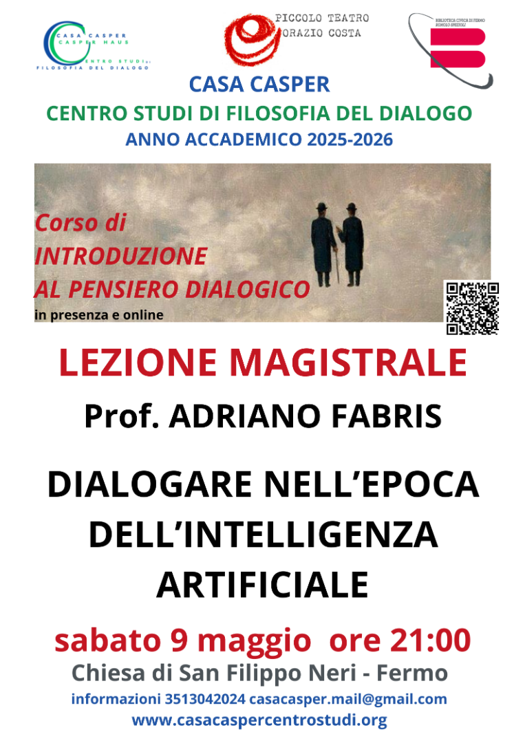 Quale spazio resta per l’incontro autentico tra esseri umani in un mondo sempre più mediato dagli algoritmi? È questa la sfida lanciata da CASA CASPER – Centro Studi di Filosofia del Dialogo, che per la chiusura del suo primo anno accademico propone una riflessione di altissimo profilo scientifico e filosofico. Sabato 9 maggio 2026, alle ore 21, la splendida cornice della Chiesa di San Filippo Neri a Fermo ospiterà la lezione magistrale dal titolo: “Dialogare nell’epoca dell’Intelligenza Artificiale”.