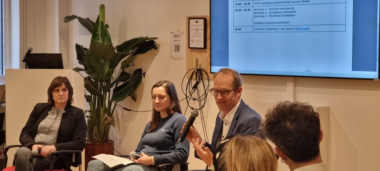 La giornata ha visto gli interventi di Koen Nomden, (DG EMPL, European Commission) sul tema “Team Leader – Skills and qualifications transparency and recognition e quindi di Pauline Boivin(Life-Long Learning Platform – LLLP), su Project and Policy Manager. Entrambi gli esperti hanno espresso i loro apprezzamenti per i risultati raggiunti da Dyvo. Nel corso dell’incontro, i volontari coinvolti nei training di Dyvo durante l’arco del progetto hanno raccontato le loro storie e le loro esperienze. La parte finale della giornata è stata dedicata a tre worshop, sull’ Inclusive volunteering, su Competency framework e su Blockchain & Validation Feedback & groups presentation.