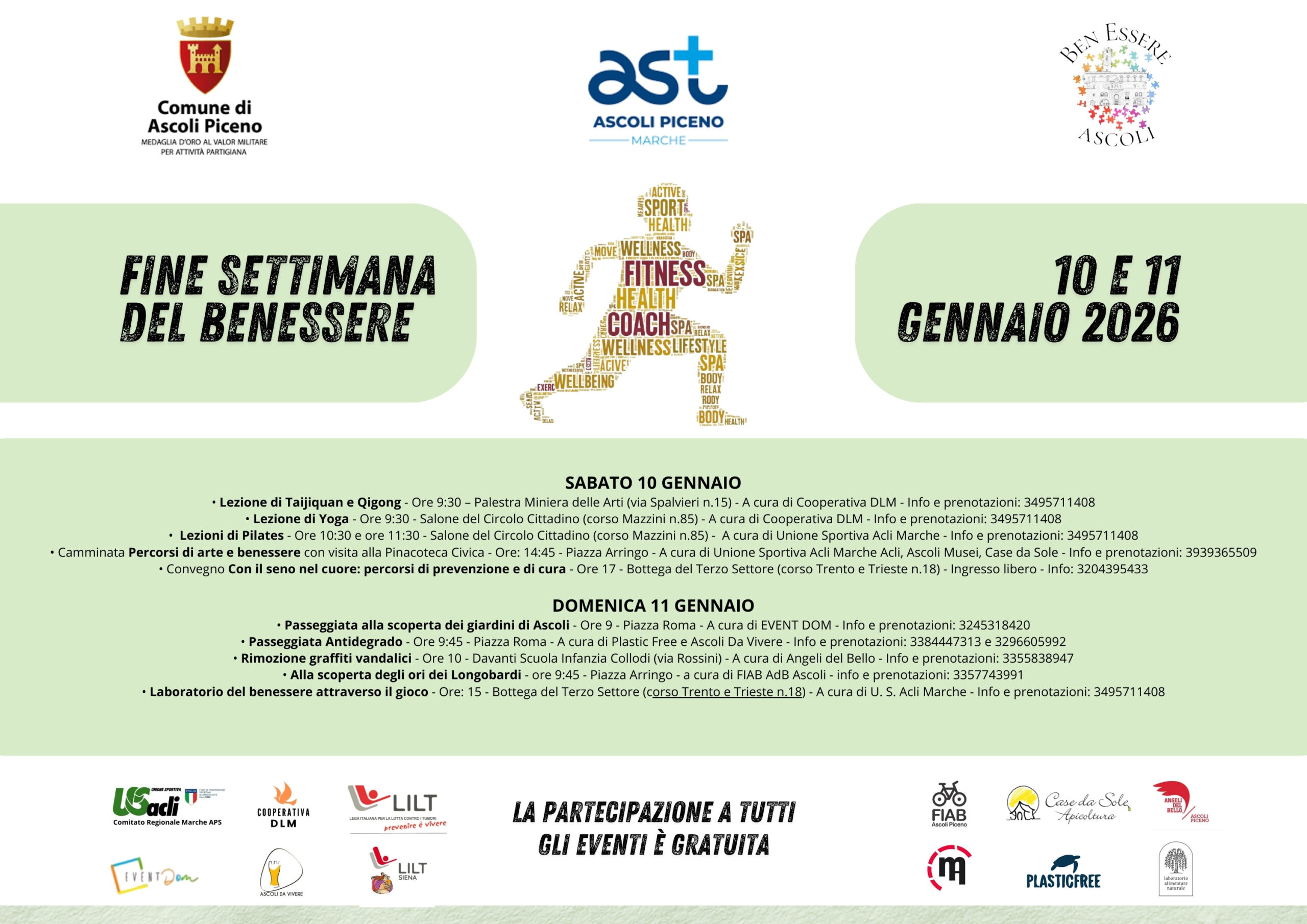 Il Comune di Ascoli Piceno, in collaborazione con AST Ascoli Piceno, e numerose realtà associative del territorio, è lieto di presentare il “Fine Settimana del Benessere”, un evento dedicato alla salute, al movimento e alla consapevolezza, che si terrà sabato 10 e domenica 11 gennaio 2026.