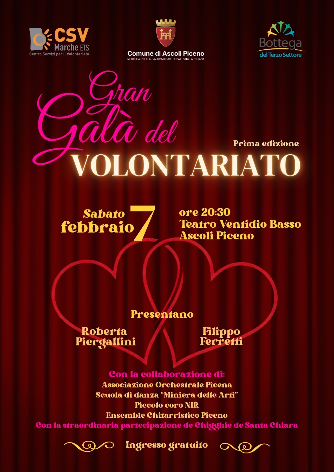 Sabato 7 febbraio 2026, alle ore 20.30, il Teatro Ventidio Basso di Ascoli Piceno ospiterà la prima edizione del Gran Galà del Volontariato, un evento speciale dedicato a tutte le persone che, ogni giorno, scelgono di mettersi al servizio degli altri e del territorio.